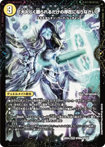 ■デュエリスト:シュタイン(各ターンに1度、 自分のマナゾーンにあるカードの枚数以下のコストで種族にシュタインを持つデュエルメイト・カードを1枚、自分の超次元ソーンからコストを支払わずに実行してもよい)
