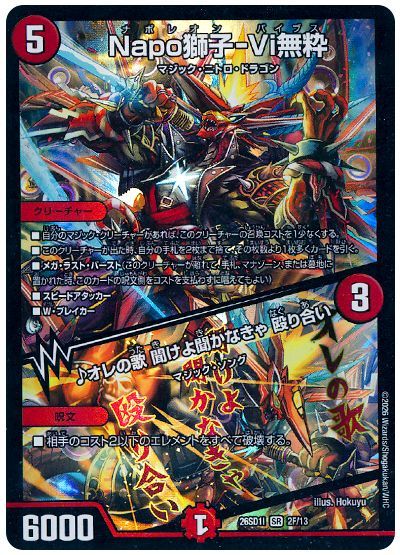 - コスト軽減された《Napo獅子-Vi無粋/♪オレの歌 聞けよ聞かなきゃ 殴り合い》の攻撃時に《 芸魔王将 カクメイジン 》に革命チェンジ