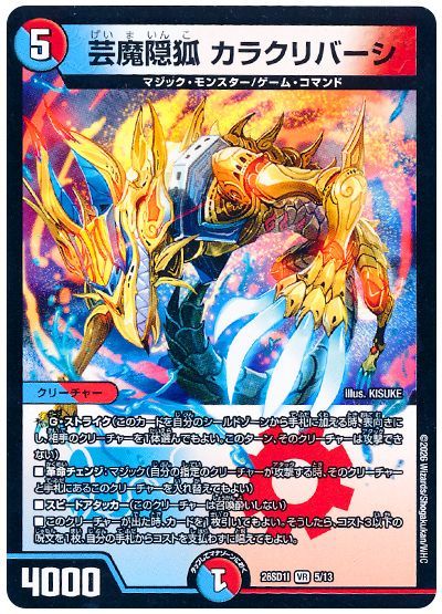 最大の特徴は、コストが5なので直接《 芸魔王将 カクメイジン 》に革命チェンジできること。他にマジックがいればコストが1減るので、見た目以上に出しやすいのもうれしいところです。
