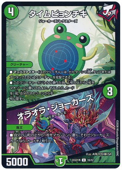 このデッキの主役と言えるクリーチャー。出た時に、手札から捨てたジョーカーズの「出た時の効果」を自分のものとして使えるカードになっています。