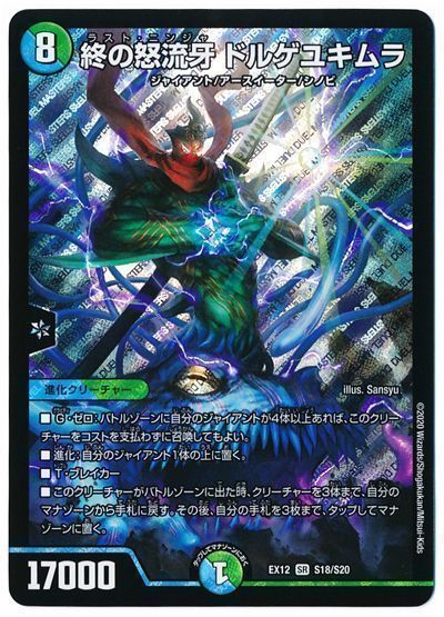 ■このクリーチャーが攻撃する時、カードが7枚以上これの下にあれば、下にあるカードをすべて手札に戻してもよい。そうしたら、このターン、このクリーチャーに「ワールド・ブレイカー」を与える。その後、コスト9以下のカードを1枚、自分の手札からコストを支払わずに実行してもよい。