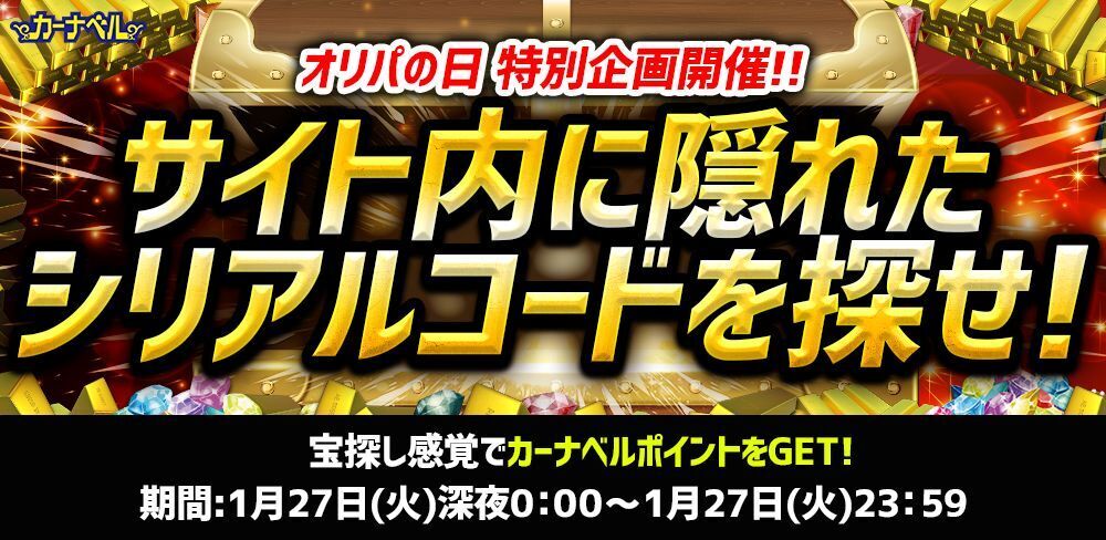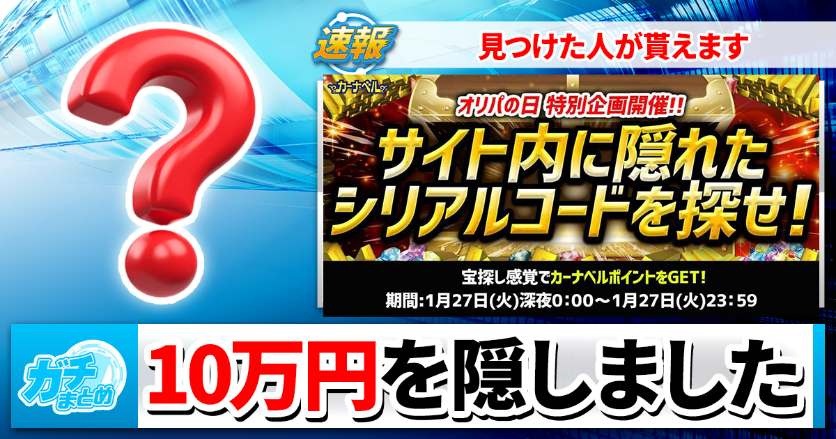 1/27の「オリパの日」限定で、カーナベルのサイトに10万円分のポイントを隠します!