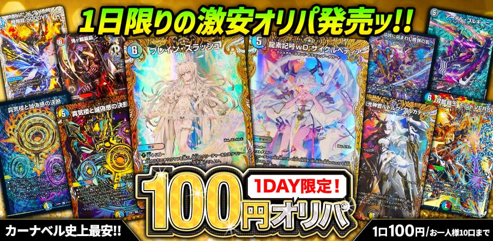 最後に紹介するのは、カーナベル史上最安価格!この日限定100円オリパです!