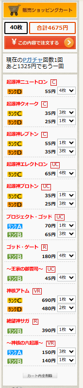 まずカーナベル販売サイトの実際の販売価格(バージョン・ランク不問)で5000円以下になるように、DECK MAKERでデッキを組んでもらいます。そのうえで、「組んだ時点での実際の価格」が分かるようにカート内か注文前画面のスクリーンショットを撮ってください