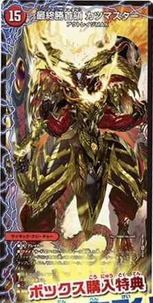 というわけで今回のメイン。《最終勝首領 カツマスター》の登場です。上のルビは、「ファファファファイナル」?と読むのでしょうか。勝首領=カツドンと最終勝=最終章のもじりが楽しい1枚です。