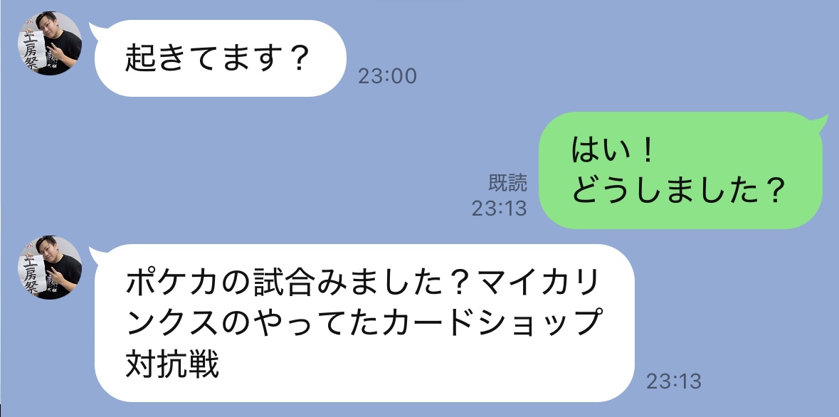 先日の金曜日、新弾前の残業も入浴も終えて、そろそろ寝るかいなと思っていたら一通のLINEが飛び込んでいました。