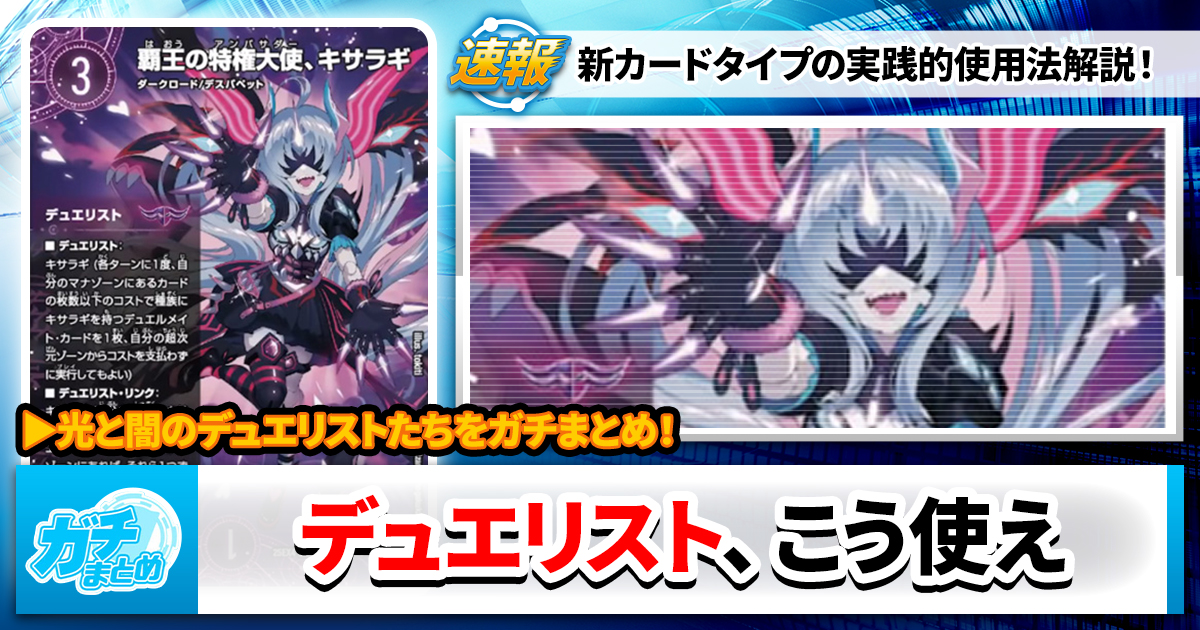 今回から2週に渡り、「デュエリスト大分析」と題しまして、目玉ギミック・デュエリスト5種を順にご紹介! 「強そうだけど、どう使うの?」「相性のいいカードは何?」「アドバンスでの活かし方がイメージできない……」そんな悩みにまるっとお答えいたします。