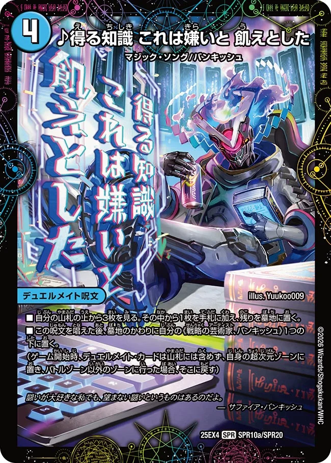 ドロー呪文である《♪得る知識 これは嫌いと 飢えとした》の汎用性が高すぎて、アナカラー系統や赤青覇道のドローとして使うこともできて、マジック以外にも使い道は無限です。