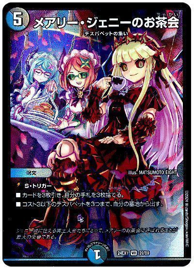 《覇王の特権大使、キサラギ》自身もデスパペットであることから《メアリー・ジェニーのお茶会》やメクレイドで出すことができます。