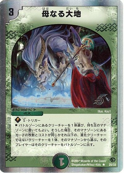 初代プレミアム殿堂カードの《 無双竜機ボルバルザーク 》はもちろんのこと、デュエマ最大の過ちとすら言われる《 母なる大地 》。