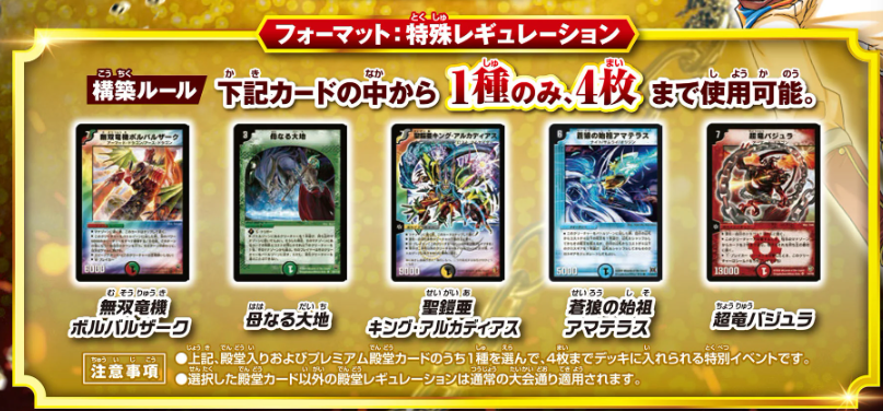 そしてイベントでは、通常の殿堂レギュレーションに加えてこれらのカードが1種4枚まで使用可能となります!