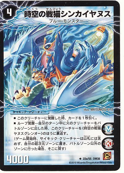 特に《時空の戦猫シンカイヤヌス》は《芸魔龍虎 ディメイジン》の跳次元召喚6で出せるうえにループ覚醒の条件を簡単に満たせるため非常に相性が良いです。