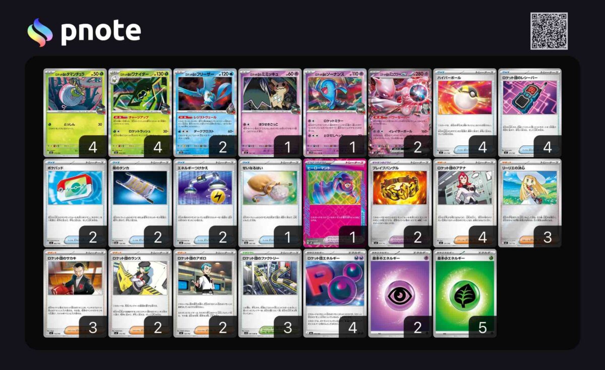 《ロケット団のドンカラス》に続いて2種類目のロケット団デッキですが、《ロケット団のミュウツーex》の魅力は対応力の高さです。