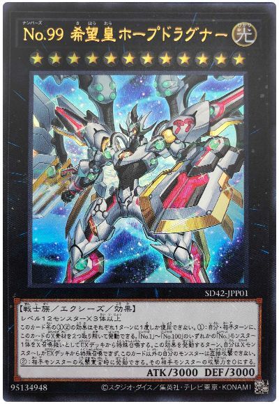 中でも《HRUM-ユートピア・フォース》から出すことができる《No.99 希望皇ホープドラグナー》が非常に強力で、自分・相手ターンに好きな【No.】Xモンスターを呼び出すことができます。
