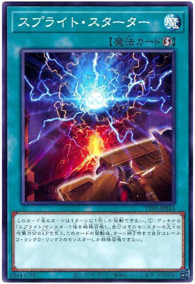 ①:デッキから「スプライト」モンスター1体を特殊召喚し、自分はそのモンスターの元々の攻撃力分のLPを失う。