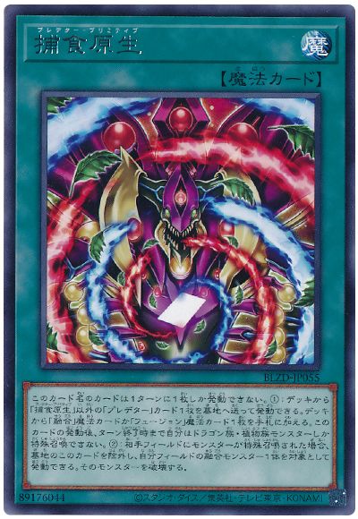 ①:このカードが手札に存在し、自分フィールドに「捕食植物」か「スターヴ・ヴェノム」モンスターが存在する場合に発動できる。このカードを特殊召喚する。その後、デッキから「融合」1枚を手札に加える事ができる。