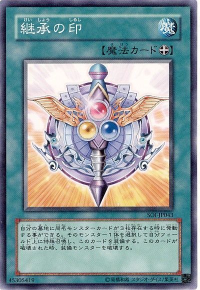 自分の墓地に同名モンスターカードが3枚存在する時に発動する事ができる。そのモンスター1体を選択して自分フィールド上に特殊召喚し、このカードを装備する。このカードが破壊された時、装備モンスターを破壊する。