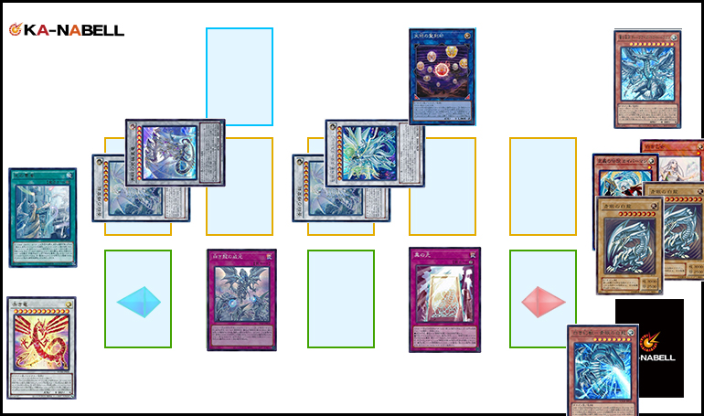 - :墓地に存在する《蒼の深淵 ディープアイズ・ホワイト・ドラゴン》の効果発動→《青眼の白龍》が墓地に送られた事で自身を墓地から特殊召喚
