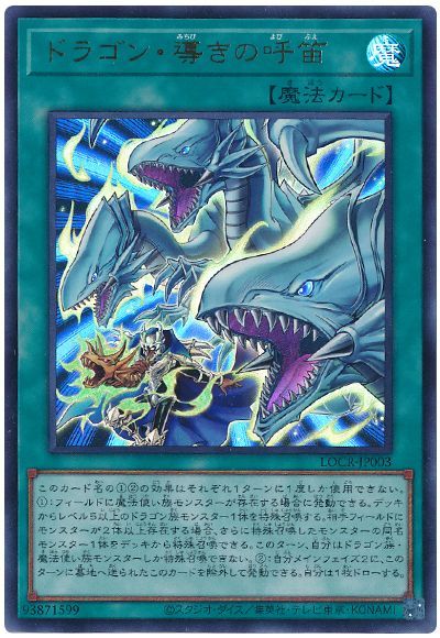 効果はフィールドに魔法使い族モンスターが存在する事を条件にデッキからレベル5以上のドラゴン族モンスターを特殊召喚しつつ、加えて相手の場にモンスターが2体以上存在していれば同名モンスターを追加でもう1体特殊召喚できる性能となっています。