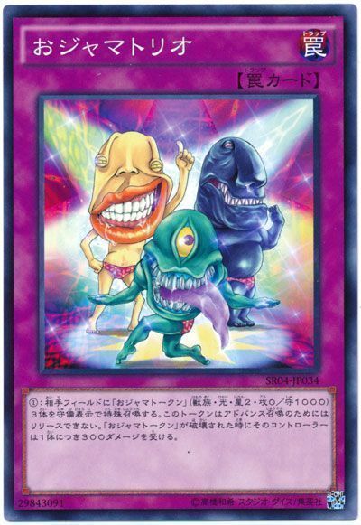相手フィールド上に「おジャマトークン」(獣族・光・星2・攻0/守1000)を3体守備表示で特殊召喚する(生け贄召喚のための生け贄にはできない)。「おジャマトークン」が破壊された時、このトークンのコントローラーは1体につき300ポイントダメージを受ける。