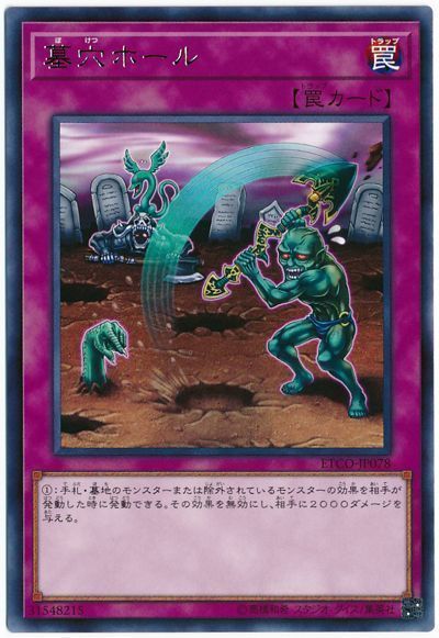 このカード名の①②の効果はそれぞれ1ターンに1度しか使用できない。①:手札からこのカードと魔法・罠カード1枚を墓地へ送り、フィールドのカード1枚を対象として発動できる。そのカードを墓地へ送る。②:このカードが墓地に存在する場合、自分フィールドの魔法・罠カード1枚を墓地へ送って発動できる。このカードを手札に加える。その後、手札からアンデット族モンスター1体を特殊召喚できる。この効果で特殊召喚したモンスターは相手ターン終了時まで、攻撃力・守備力が1000アップし、効果では破壊されない。