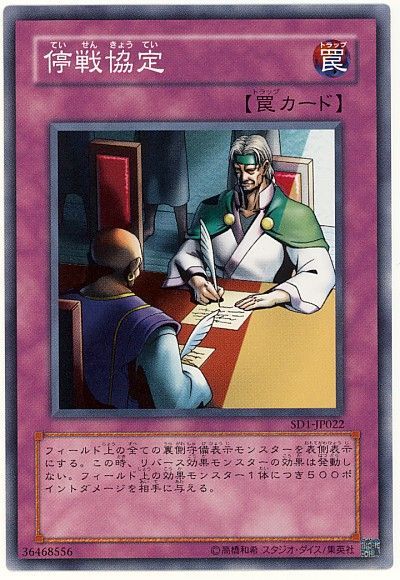このカードの発動後、ターン終了時まで相手が受ける全てのダメージは0になる。