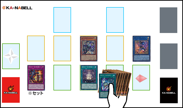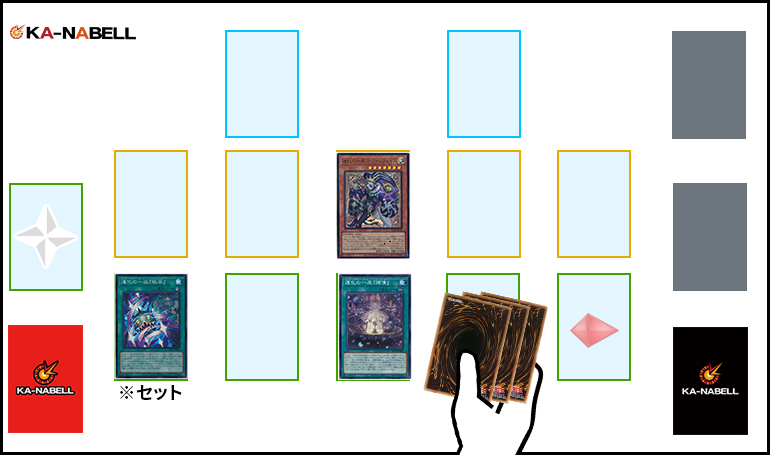 この展開ではA召喚するための上級モンスターはドローで引きこむことを狙っています。