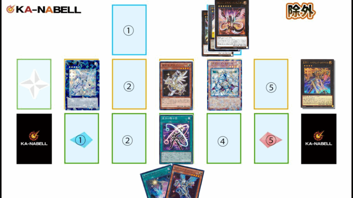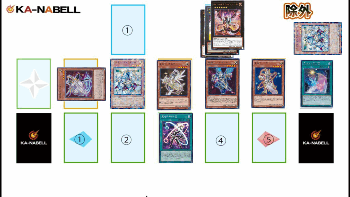 今回は上記の展開を紹介しましたが、手札誘発の受け等は考慮していないため、実戦ではターンスキップを目指さずに妨害の受けを作りながら《超神星輝士セイクリッド・トレミスΩ7》《セイクリッド・プレアデス》のバウンスや《セイクリッド・カストル》の魔法無効等で盤面を固める展開を選択することもあるでしょう。