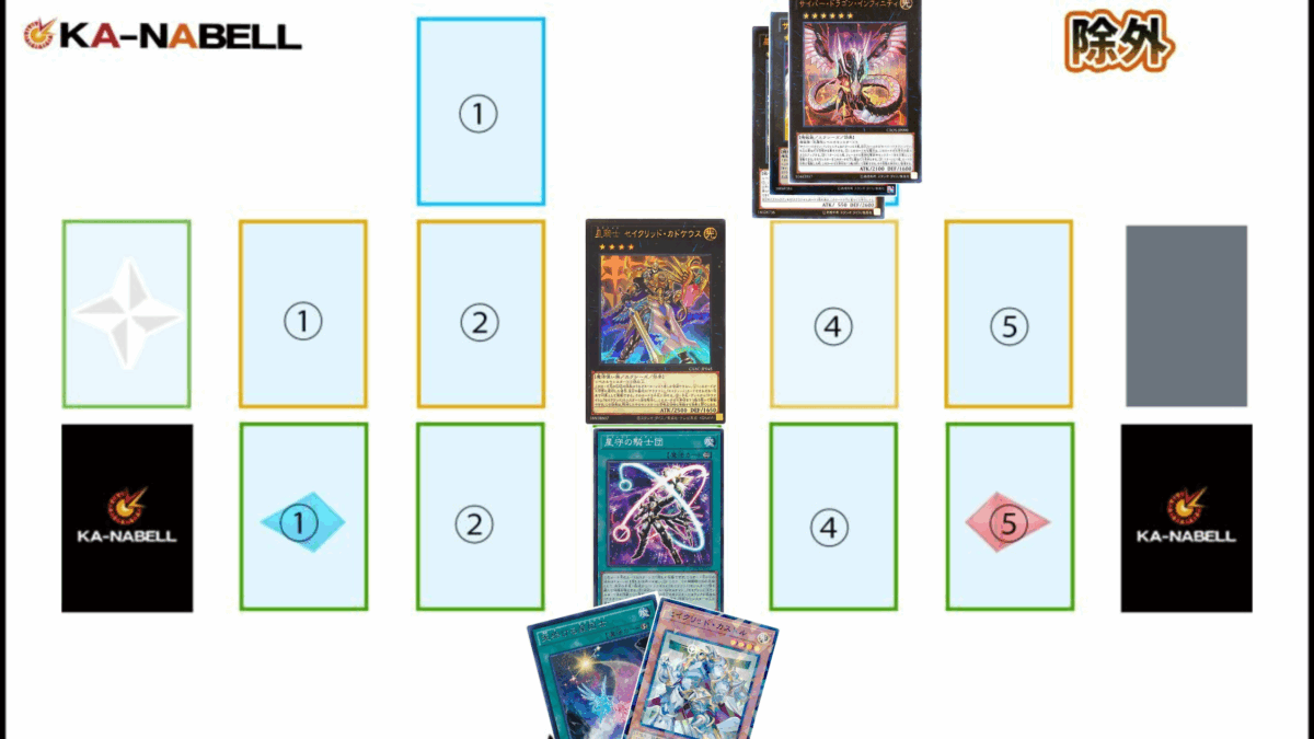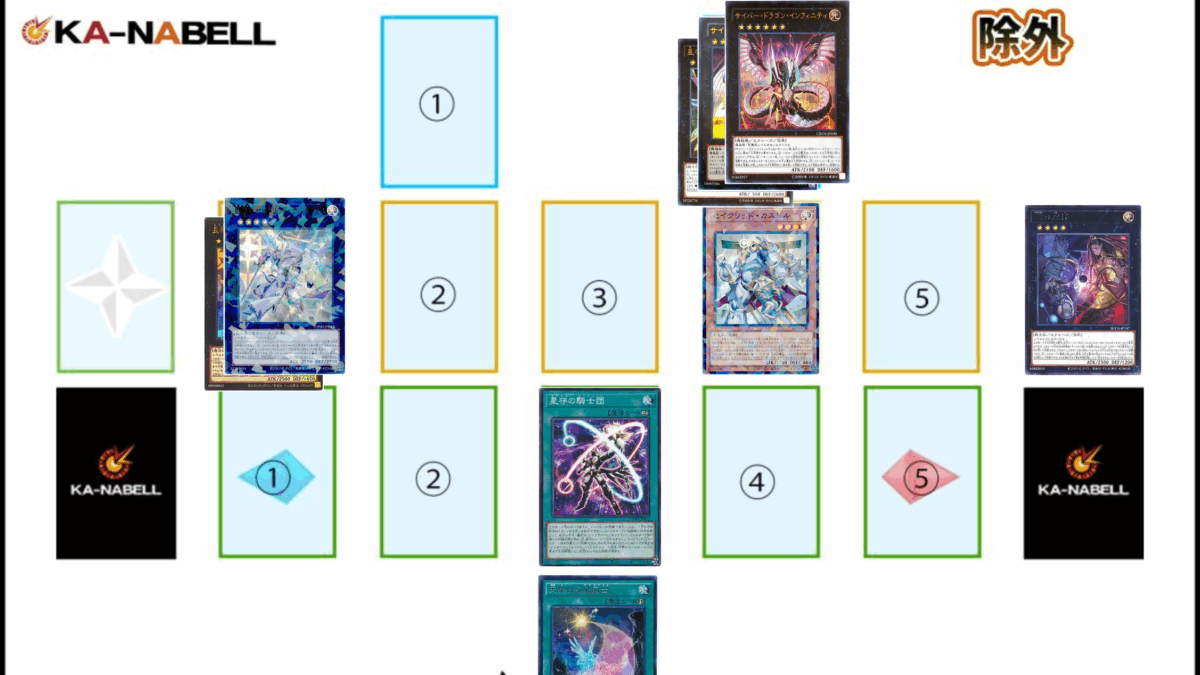 今回は《セイクリッド・カストル》1枚から《サイバー・ドラゴン・インフィニティ》を着地させながら《星守の騎士プトレマイオス》の7素材効果によるターンスキップで実質的な先攻ワンキルを行う展開例を紹介します。