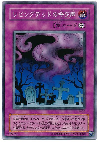 自分の墓地からモンスターカード1体を選び、攻撃表示で特殊召喚する。このカードがフィールド上に存在しなくなったら、そのモンスターを破壊する。そのモンスターが破壊された時、このカードを破壊する。