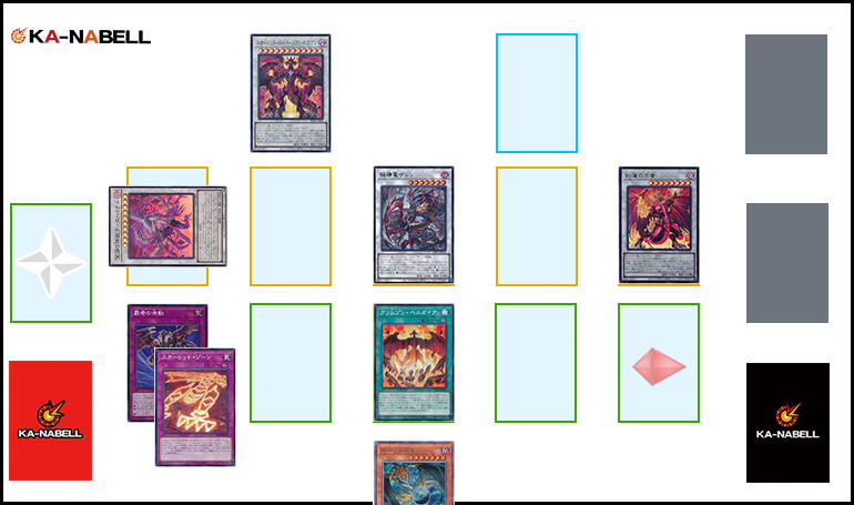 今回は《パワー・バイス・ドラゴン》初動による展開でしたが、これは《クリムゾン・ヘルガイア》を初動とする場合でも応用する事が出来ます。