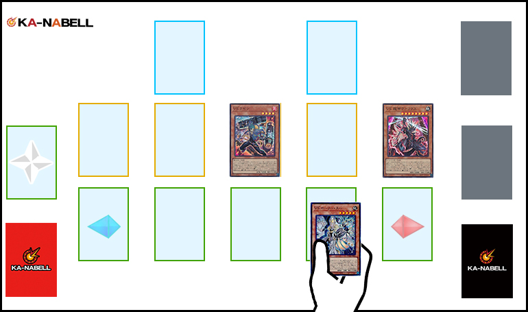 炎・闇属性モンスターが手札にあれば《VS ラゼン》の効果で同じ列のモンスターを破壊できるので、相手展開の妨害としても活用することができます。