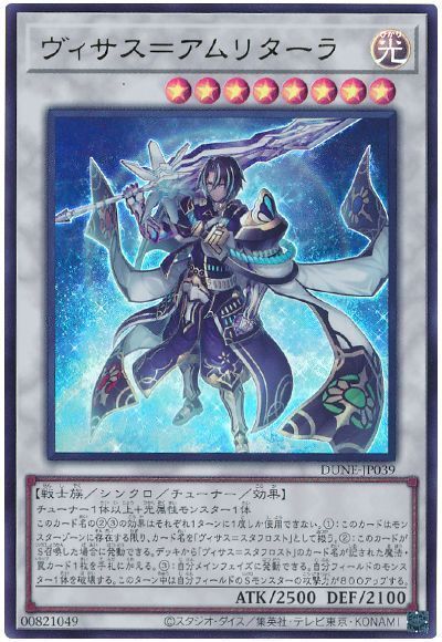 偶数レベルのシンクロモンスターやシンクロチューナーとは基本的に相性がいいのが【白き森】ですが、特におすすめしたいのは《ヴィサス=アムリターラ》!レベル8シンクロチューナーであるこのカードは残念ながら《白き森の妖魔ディアベル》の効果で呼び出すことはできませんが、味方シンクロモンスターを条件とする万能カウンターの《伍世壊浄心》をサーチしつつ《白き森のアステーリャ》《白き森のリゼット》と合わせて《フルール・ド・バロネス》に繋げる最高の中継点となる1枚。