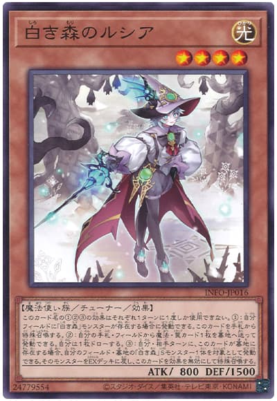 後述するように効果にコストを必要とするものがほとんどであるため1枚初動にはならないのを免罪符としているのか、下級モンスターにチューナーの特殊召喚、「白き森」モンスターのサーチ、「白き森」魔法・罠カードのサーチととにかくデッキに触る効果を持ちまくっているのが安定性に繋がっています。