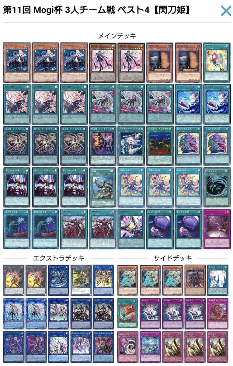 同率ベスト4は【閃刀姫】【ヤミー】【月光】となりました。