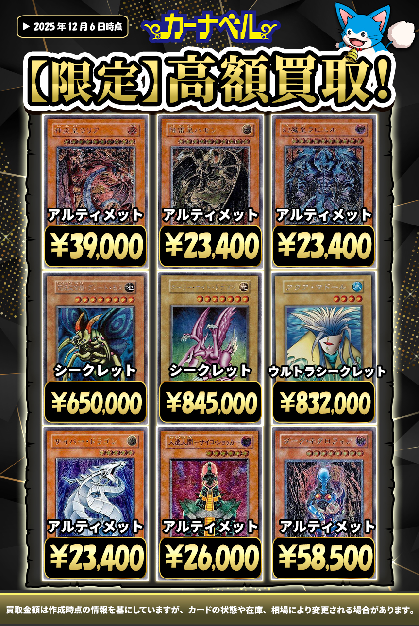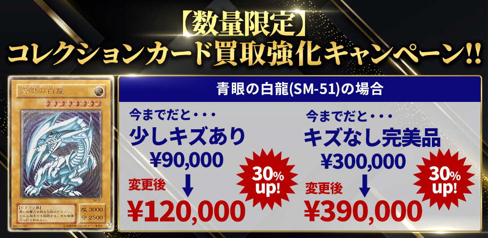 対象となるカード種は、まずは遊戯王。そして、完美品金額UPのみポケモンカードでも実施します!!