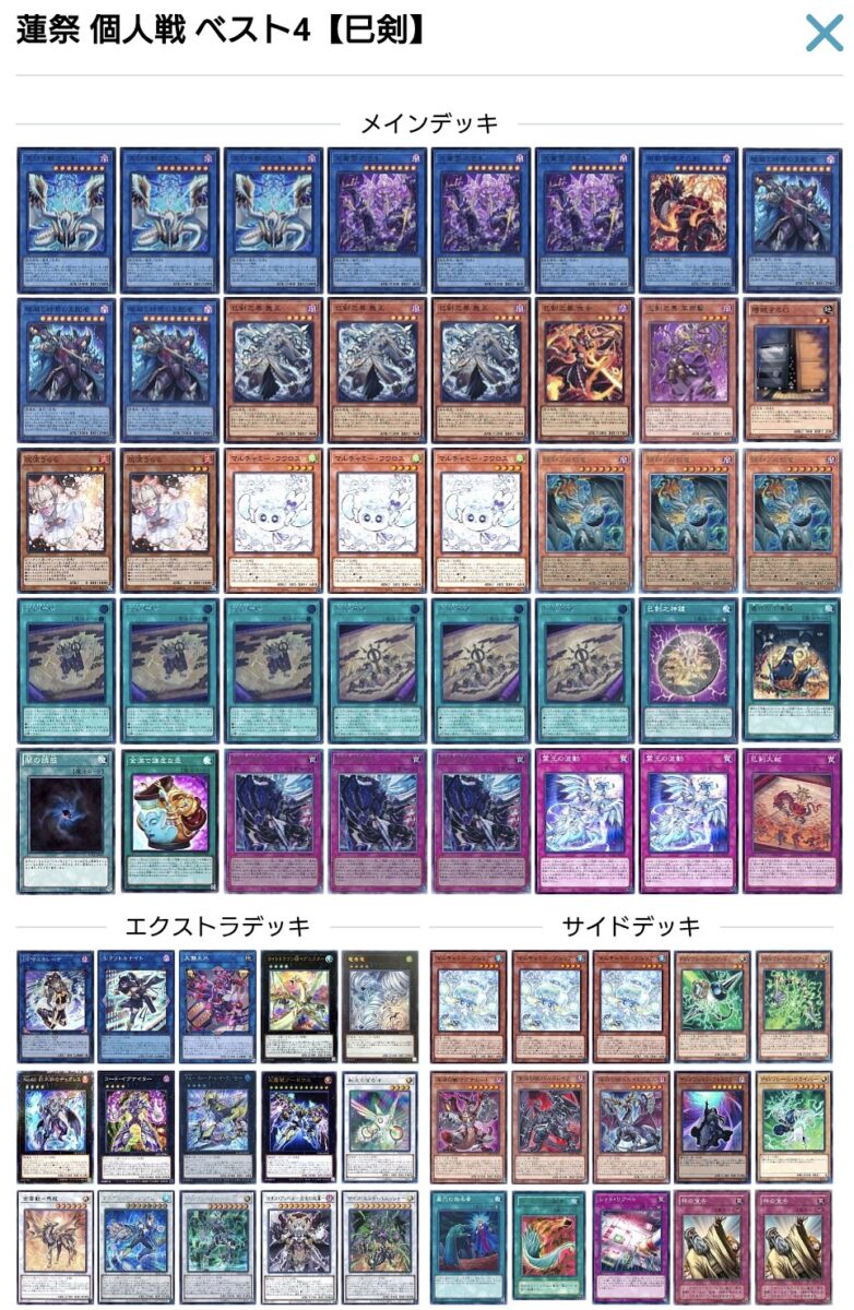 各「巳剣」モンスターの他にも《調和ノ天救竜》や《破滅と終焉の支配者》といった闇属性のカードがデッキの半分を占めていることからある程度不自由なく発動できる点が評価されています。