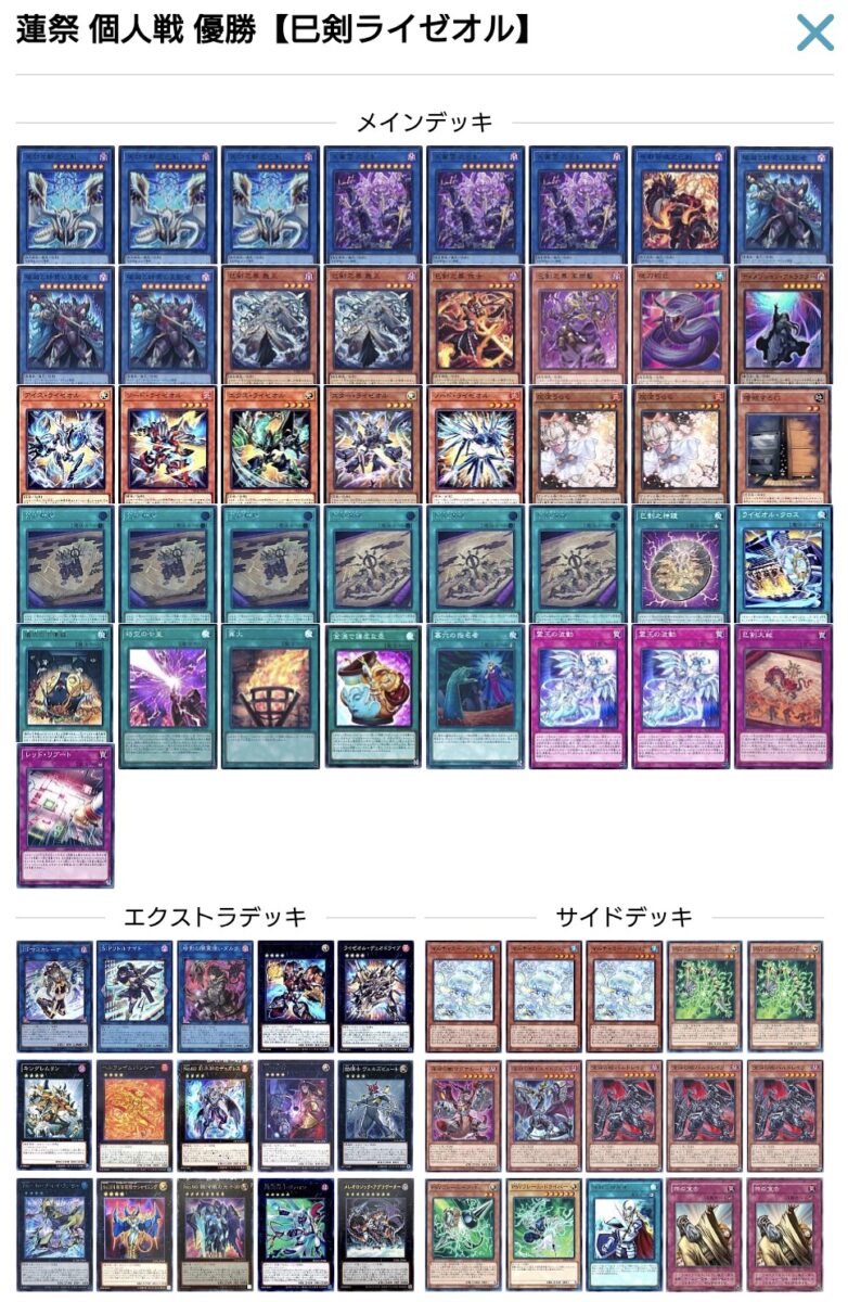 純構築が分布のほとんどが占める中で、「ライゼオル」型を使用し9ー0優勝を納めています。