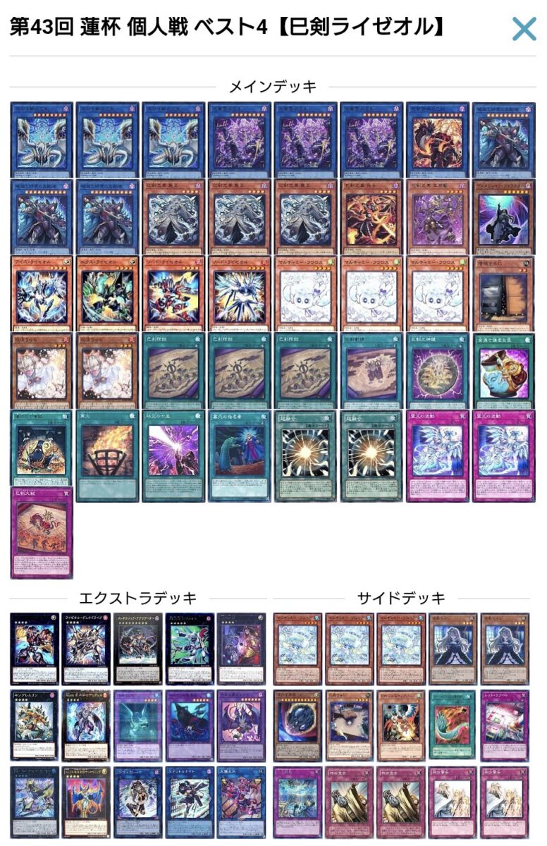 前期で見られた構築に比べると《アイス・ライゼオル》が制限になった影響もあり【巳剣】に「ライゼオル」がタッチで投入されている形となっていますね。