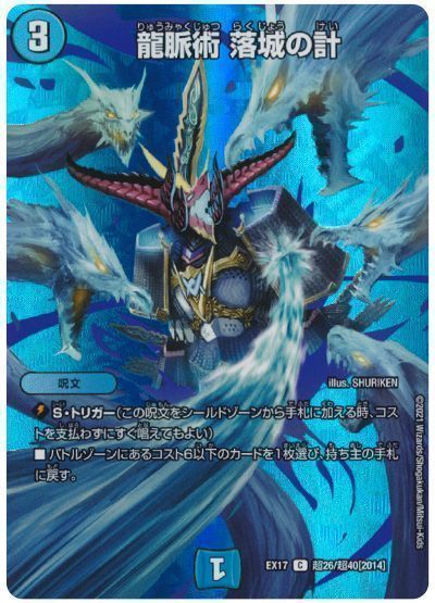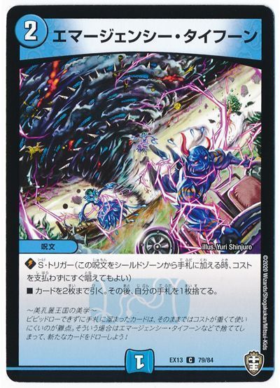 サンプルリストでは《エマージェンシー・タイフーン》を追加で1枚採用し、6マナ時の《エマージェンシー・タイフーン》+《死神術士デスマーチ》+《龍脈術 落城の計》をより達成しやすくしています。