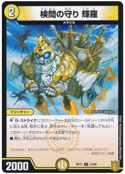 弱点は《とこしえの超人》・《検問の守り 輝羅》以外の踏み倒しメタクリーチャーが、ほとんど致命的に刺さる点。