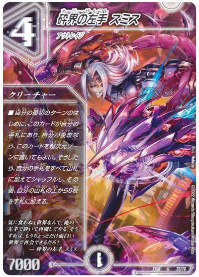 《斬罪 シ蔑ザンド》を採用することで中盤の動きの幅を広められるメリットよりも、コンボの成立速度が落ち、《とこしえの超人》にも引っかかってしまうデメリットの方が現時点では上回っていると判断されています。