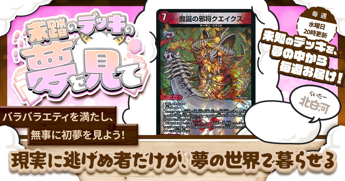 ここまでトリガーに特化した先行研究自体はなかったんですが……《 魔誕の邪将クエイクス 》《 ストーム・ハイパーXX 》をベースに、《 ボルシャック・モモキングNEX 》からさらなる踏み倒しを連鎖させるというロマンあふれすぎるデッキが見つかったことも添えておきます。