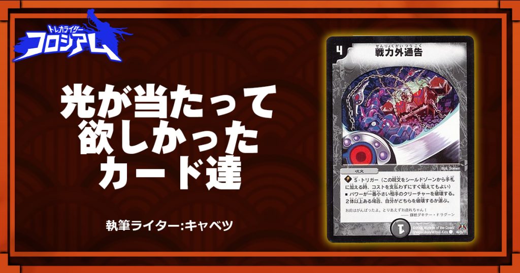カードの価値を「用途がない」ではなく「有用に使う術がない」とすることによって、まだ世に出ていないカードとの組み合わせを考慮しうるのではないかと。