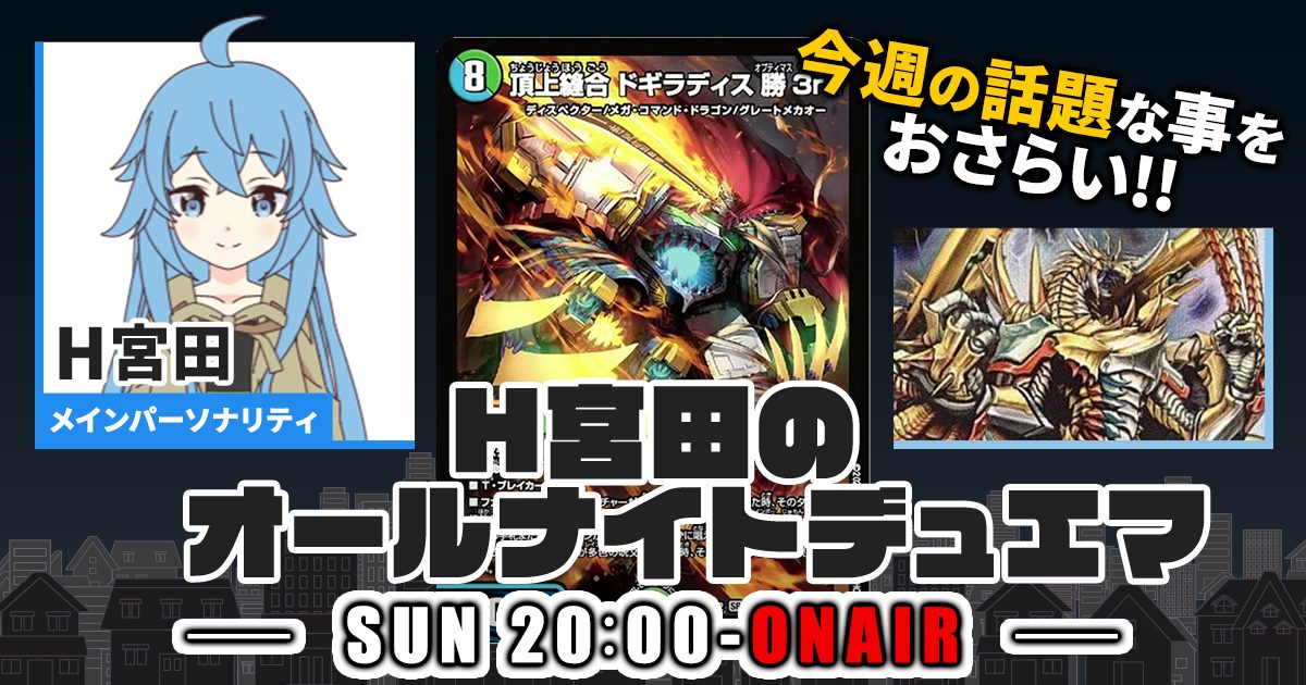 みなさんこんばんは!今週もはじまりました、H宮田のオールナイトデュエマ!