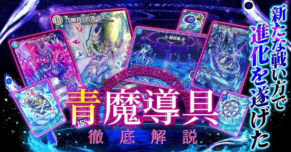 【青魔導具】は《卍新世壊卍》の下に魔導具呪文を四枚以上ためて、《月下卍壊ガ・リュミーズ卍》を唱え、強力なドルスザククリーチャーを踏み倒し大量のアドバンテージを獲得します。