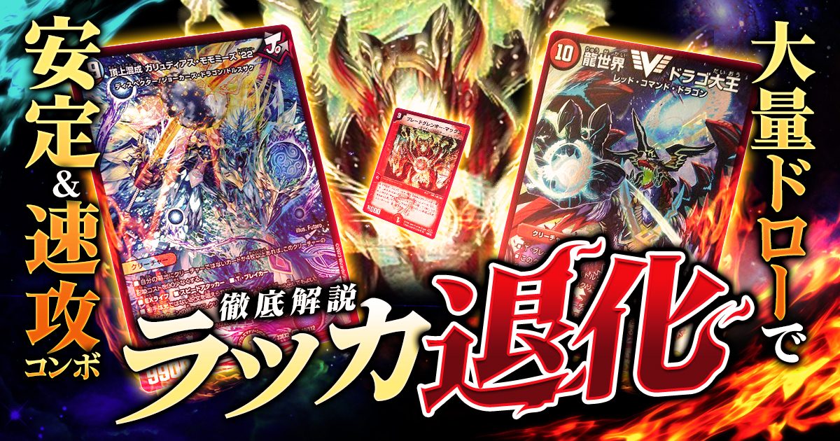 今回は新弾のデュエキングMAXで登場した《頂上混成 ガリュディアス・モモミーズ'22》を使った【ラッカマナ退化】を紹介します。